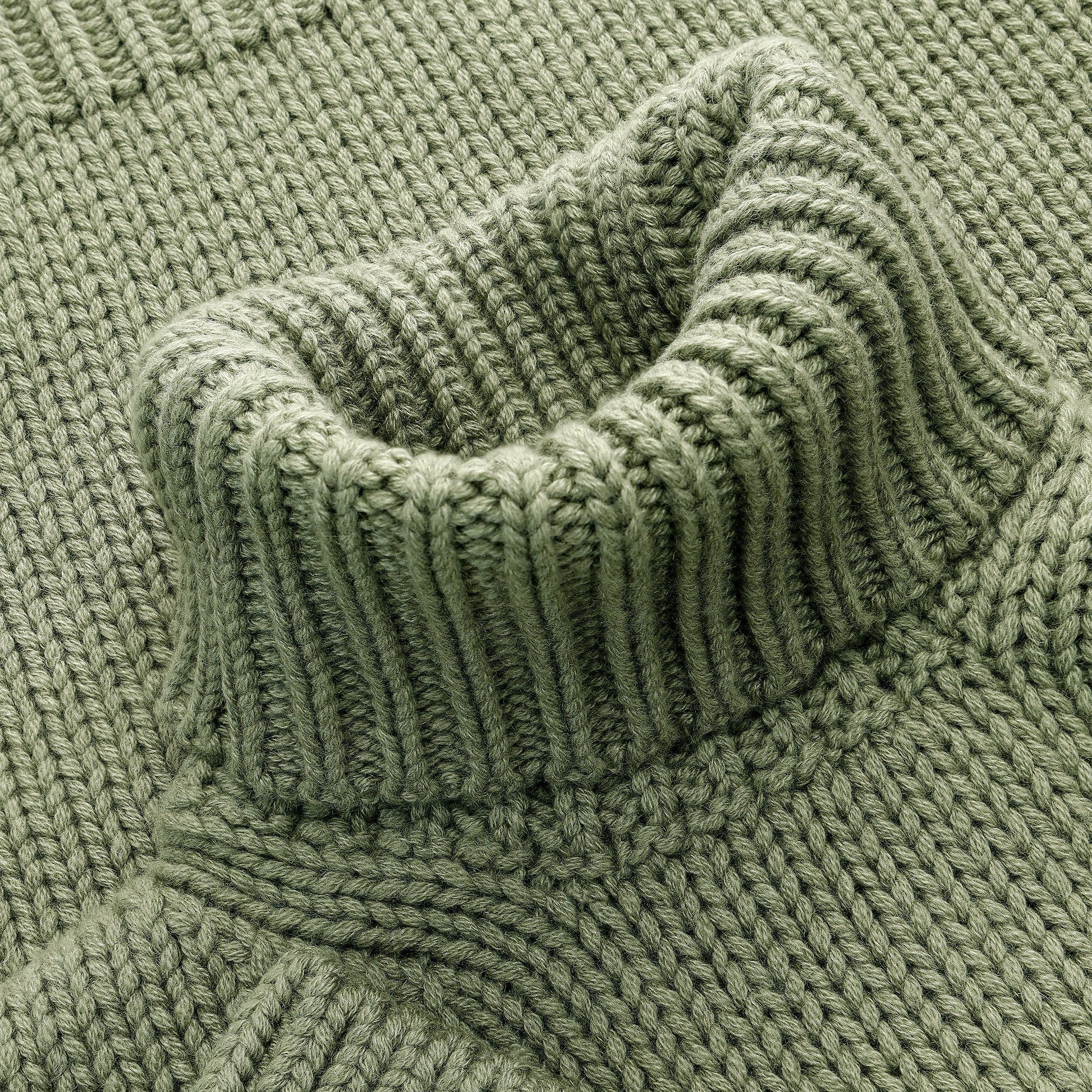 A classic cable knit pattern adds depth and character, while the smooth ribbed turtleneck and cuffs bring a refined, modern elegance. Its deep green shade makes it versatile for both casual and sophisticated looks pair it with tailored trousers for a polished ensemble or layer it with denim for relaxed weekend style.